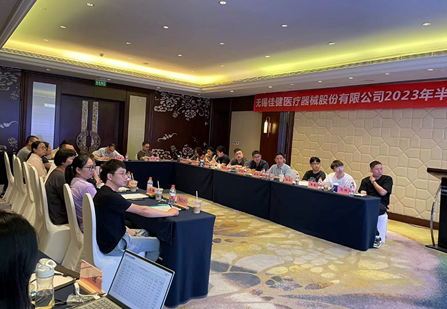 本次会议由佳健医疗董事长兼总经理王文清先生主持,各部门负责人及公司相关人员代表参加。会议首先总结回顾了2023年上半年公司运营情况,并结合国际经济形势布置2023年下半年的工作、规划2024年的工作,为下一阶段公司的发展指明了具体方向和目标。