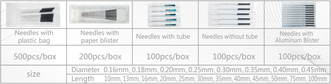 Sterile Acupuncture needles with conductive plastic handle